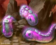 "Egy szemi-intelligens asztrális állat a bíbor mösze. Apró kis féreg, amely céltalanul bolyong a pszionikus térben, tudatfoszlányokkal és érzelemnyomokkal táplálva magát. A bíbor möszék gyakran közlekednek nagyobb rajokban, így védve magukat az asztrális tér rettenetes ragadozóitól." - Encyclopedia Fantasia