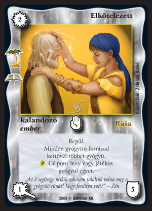 Elkötelezett (6): Gyógyító paklik alapja lesz. Na de van olyan? Én nem igazán emlékszem rá. Esetleg lehet vele próbálkozni, ha ez kijön, meg egy Raia főpapja, akkor már két lapos kombóval elkezdtünk lapokat húzogatni, s akkor még nyerni is kell, meg önmagában egyik se túl jó... Szerintem egy ilyen paklival csak bukdácsolni lehet, meg idegesíteni az ellenfelet, hogy még mindig nem bírt megölni.