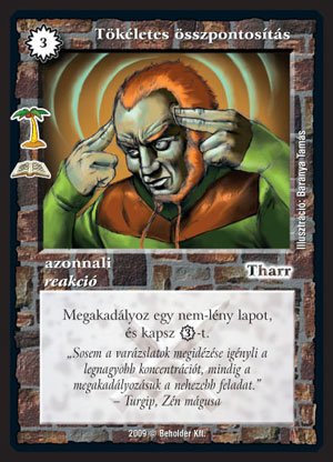 Tökéletes összpontosítás (8): Három VP-s counter a 2010-es év hajnalán? Ki hallott már ilyet? Nos, bármennyire is hihetetlen, összességében sikerült egy manapság igen drágának számító, és mégis jól használható countert kialakítani. A befektetés igen borsos, s a megtérülés sem annyira nagy; egy sima 0 VP-s varászlat counter annyira nagyon nem nagy dolog manapság. A dolog pikantériáját szerintem az adja, hogy tárgyakat, épületeket is lecsíphetünk vele, így jelentősen megnő a használhatósága, főleg mert olyan lapok ellen jó, melyek ellen a sima varázslat counterek fölöslegesek. Ráadásul a Szúnyogirtással és a Triniganos lapokkal is jól megfér.