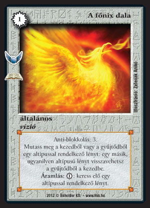 A főnix dala (8): Ha etnikum paklival játszunk, ne legyünk restek azonnal bepakolni egyet a paklinkba. Körönként visszavenni egy lényt - ezt biztosan ki fogjuk tudni használni valahogy. Anti-mágiával sajnos elég rosszul muzsikál, hiszen ezt azonnal el fogjuk dobni mielőtt használni tudnánk. Igaz van egy áramlása is, de az már tényleg csak végső esetben lesz jó, hisz drága mulatság. Leginkább olyan pakliban tudom elképzelni, ahol van pár kulcslapunk és nem annyira felcserélhetőek a lapjaink. Ha mást nem side-ba rakjuk be.