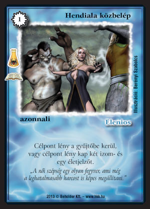 Hendiala közbelép (8): Korrekt két funkciós lap. Egyért lényt lelőni nem olyan rossz, főleg, hogy van alternatív képessége is a lapnak. Két izom és egy élet már határozottan jónak hangzik 1 VP és 1 lap befektetése árán. Ráadásul azonnali volta miatt életmentő hatásnak is használhatjuk. Szerintem látni fogjuk ezt a lapot versenyeken, ha máshol nem, korláztozott környezetben.