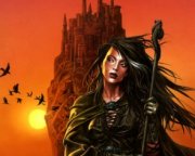 A varázsló játszmája című könyvből lopott jelenet: Polgara, a varázslónő épp Rak Cthol sötét városát kémleli.