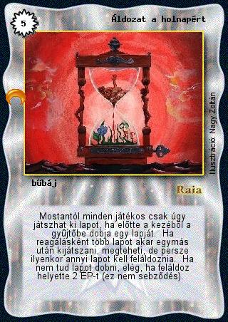 Szöveg: Mostantól minden játékos csak úgy játszhat ki lapot, ha előtte a kezéből a gyűjtőbe dobja egy lapját. Ha reagálásként több lapot akar egymás után kijátszani, megteheti, de persze ilyenkor annyi lapot kell feláldoznia. Ha nem tud lapot dobni, elég, ha feláldoz helyette 2 ÉP-t (ez nem sebződés).