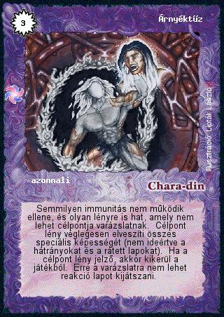 Kiadás: Létsíkok Gyakoriság: ritka Lapszín (isten): Chara-din Típus: azonnali Szöveg: Semmilyen immunitás nem működik ellene, és olyan lényre is hat, amely nem lehet célpontja varázslatnak. Célpont lény véglegesen elveszíti összes speciális képességét (nem ideértve a hátrányokat és a rátett lapokat). Ha a célpont lény jelző, akkor kikerül a játékból. Erre a varázslatra nem lehet reakció lapot kijátszani. Illusztráció: Lipták László