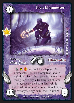 Szöveg: (S), (P), (1): célpont lény lap kap X-1 dermesztés-, és X-1 álomjelzőt, ahol X a játékban levő ében íjászaid száma, te pedig kapsz egy aktív lény jelzőt, ami megegyezik a célpont lénnyel, de kijátszáskori képességei nem jönnek létre, és hátránya, hogy nem lehet feláldozni.