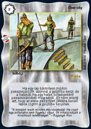 Kiadás: Víziók Gyakoriság: nem gyakori Lapszín (isten): Raia Típus: bűbáj Szöveg: Ha egy lap bármilyen módon passzivizálódik, azonnal a gyűjtőbe kerül, de a hatását (ha egy hatás költségeként passzivizálódott) még kifejti. Ez nem jelenti azt, hogy az eleve passzívan játékba kerülő lapok rögtön a gyűjtőbe kerülnek. Szinesítő szöveg: "A tolvajok lesik minden mozdulatodat. Ha csak egy pillanatra nem figyelsz rájuk, ők kihasználják a kínálkozó lehetőséget." - Ragyogó Ron Illusztráció: Pásztor Tibor