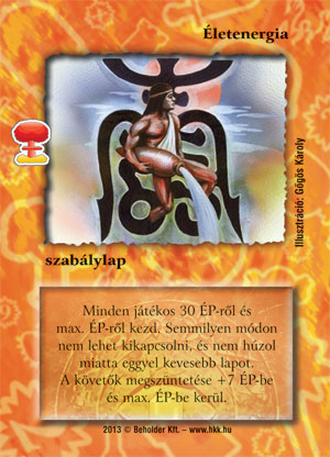 Szöveg: Minden játékos 30 ÉP-ről és max. ÉP-ről kezd. Semmilyen módon nem lehet kikapcsolni, és nem húzol miatta eggyel kevesebb lapot. A követők megszüntetése +7 ÉP-be és max. ÉP-be kerül.