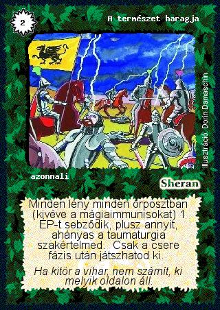 Szöveg: Minden lény minden őrposztban (kivéve a mágiaimmunisokat) 1 ÉP-t sebződik, plusz annyit, ahányas a taumaturgia szakértelmed. Csak a csere fázis után játszhatod ki.