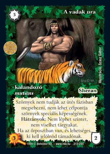 Kiadás: Árnyékhold, Túlélők Földje Gyakoriság: ritka Lapszín (isten): Sheran Típus: kalandozó Altípus: mutáns Szöveg: Szörnyek nem tudják az ütés fázisban megsebezni, nem lehet célpontja szörnyek speciális képességének. Nem léphet szintet, nem viselhet tárgyakat. Ha az őrposztban van, és lehetséges, ki kell jelölnöd támadónak. Illusztráció: Szász Gábor