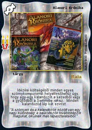 Kiadás: Régmúlt Gyakoriság: ritka Lapszín (isten): Raia Típus: tárgy Szöveg: Idézési költségéből minden egyes szörnykomponenst helyettesíthetsz úgy, hogy egy-egy kalandozót a kezedből vagy a gyűjtődből a Semmibe raksz. Minden kalandozód lép két szintet. Szinesítő szöveg: "A szörnyek és a kalandozók között van egy nagy különbség: a kalandozók továbbképzik magukat, okulnak más tapasztalataiból." Illusztráció: Prekop László