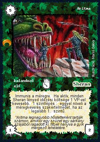 Szöveg: Immunis a méregre. Ha aktív, minden Sheran lényed idézési költsége 1 VP-vel kevesebb. 1 szintlépés: eggyel növeli a méregkeverés szakértelmedet, ha az legalább 1. szintű.