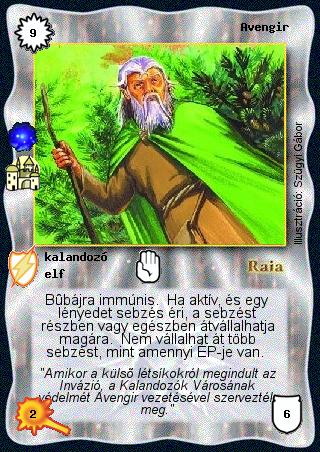Szinesítő szöveg: "Amikor a külső létsíkokról megindult az Invázió, a Kalandozók Városának védelmét Avengir vezetésével szervezték meg."