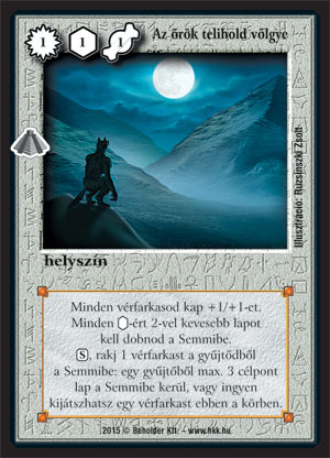 Az örök telihold völgye mellett nem változik a vérfarkasok idézési költsége. Az idézési költségben szereplő nekronok száma nem változik attól, hogy egy-egy nekronnak négynél kevesebb (esetleg több) lapot kell a pakli tetejéről a Semmibe dobni. |