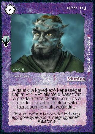 Kiadás: Alappakli, 5. kiadás (Ősök városa), Alappakli, 6. kiadás (Ősök Városa), Alappakli, 7. kiadás (Ősök Városa) Gyakoriság: nem gyakori Lapszín (isten): Mutáns Klán Típus: testrész Szöveg: A galetki a következő képességet kapja: +: 1 VP: ellenfele passzívan a gazdája tartalékjába kerül, és a gazdája következő előkészítő fázisában nem aktivizálódik. Szinesítő szöveg: "Fúj, ez valami borzasztó! Ezt még egy görényteknőc is megirigyelné!" - Kalafonia Illusztráció: Szász Gábor