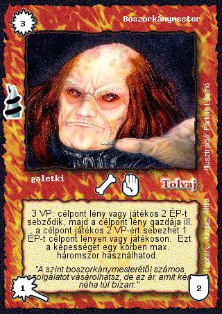 Szöveg: 3 VP: célpont lény vagy játékos 2 ÉP-t sebződik, majd a célpont lény gazdája ill. a célpont játékos 2 VP-ért sebezhet 1 ÉP-t célpont lényen vagy játékoson. Ezt a képességet egy körben max. háromszor használhatod.