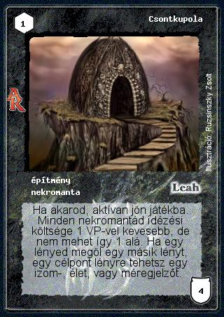 Szöveg: Ha akarod, aktívan jön játékba. Minden nekromantád idézési költsége 1 VP-vel kevesebb, de nem mehet így 1 alá. Ha egy lényed megöl egy másik lényt, egy célpont lényre tehetsz egy izom-, élet, vagy méregjelzőt.