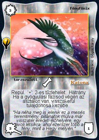 Szöveg: Repül. '+': 2-es tűzlehelet. Hátrány: Ha a gyógyulási fázisod végén az asztalon van, visszakerül tulajdonosa kezébe.