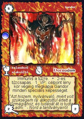 Szöveg: Immúnis a tűzre. +: 2-es tűzcsapás. 1 VP: célpont lény kör végéig megkapja Gandor minden speciális képességét.