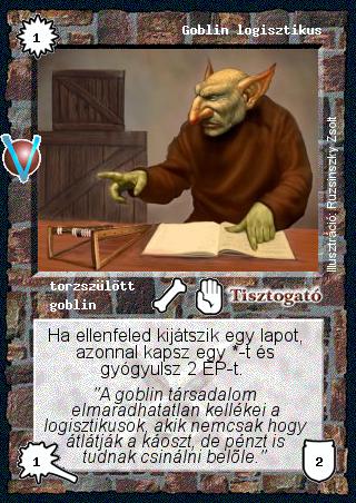 Szinesítő szöveg: "A goblin társadalom elmaradhatatlan kellékei a logisztikusok, akik nemcsak hogy átlátják a káoszt, de pénzt is tudnak csinálni belőle."