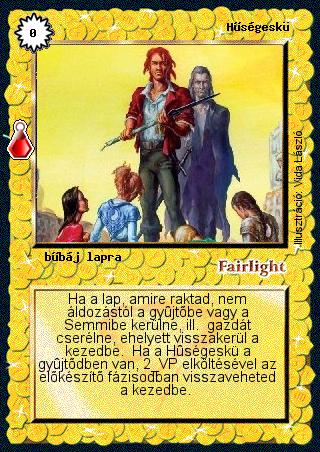 Szöveg: Ha a lap, amire raktad, nem áldozástól a gyűjtőbe vagy a Semmibe kerülne, ill. gazdát cserélne, ehelyett visszakerül a kezedbe. Ha a Hűségeskü a gyűjtődben van, 2 VP elköltésével az előkészítő fázisodban visszaveheted a kezedbe.