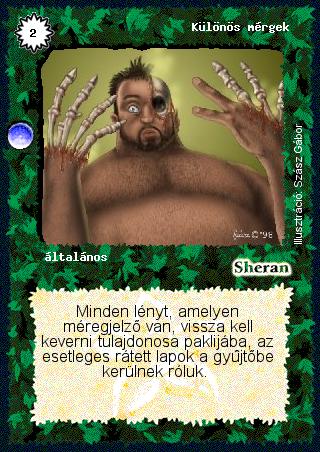 Kiadás: Árnyékhold Gyakoriság: nem gyakori Lapszín (isten): Sheran Típus: általános Szöveg: Minden lényt, amelyen méregjelző van, vissza kell keverni tulajdonosa paklijába, az esetleges rátett lapok a gyűjtőbe kerülnek róluk. Illusztráció: Szász Gábor