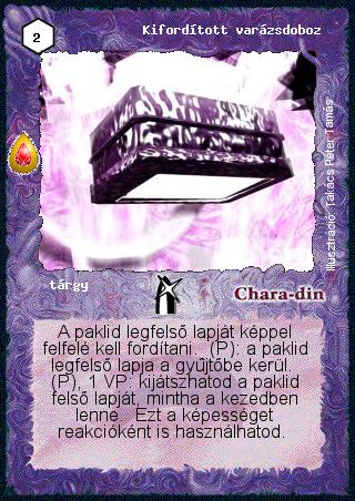 (AK140) Nem párbajozhatom el a Kifordított varázsdobozzal a felfordított lapot. Az a lap nincs a kezedben, csak kijátszhatod, de nem dobhatod el idézési költségnek, nem kincsezhetsz vele, nem párbajozhatsz stb.