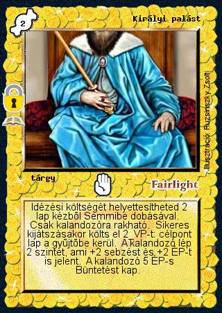 Kiadás: Nuk kincseskamrája (Zén) Gyakoriság: ritka Lapszín (isten): Fairlight Típus: tárgy Szöveg: Idézési költségét helyettesítheted 2 lap kézből Semmibe dobásával. Csak kalandozóra rakható. Sikeres kijátszásakor költs el 2 VP-t: célpont lap a gyűjtőbe kerül. A kalandozó lép 2 szintet, ami +2 sebzést és +2 ÉP-t is jelent. A kalandozó 5 ÉP-s Büntetést kap. Illusztráció: Ruzsinszki Zsolt
