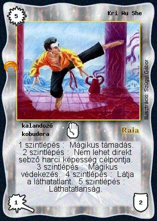 Szöveg: 1 szintlépés: Mágikus támadás. 2 szintlépés: Nem lehet direkt sebző harci képesség célpontja. 3 szintlépés: Mágikus védekezés. 4 szintlépés: Látja a láthatatlant. 5 szintlépés: Láthatatlanság.