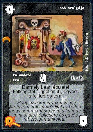 Szinesítő szöveg: "Hogy ez a korcs vakarcs egy tisztavérű troll lenne? Hát az biztos, hogy semmi másra nem alkalmas, mint oltárok építésére és egyéb rabszolgamunkákra."