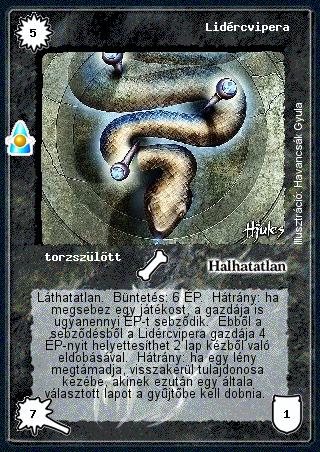 Szöveg: Láthatatlan. Büntetés: 6 ÉP. Hátrány: ha megsebez egy játékost, a gazdája is ugyanennyi ÉP-t sebződik. Ebből a sebződésből a Lidércvipera gazdája 4 ÉP-nyit helyettesíthet 2 lap kézből való eldobásával. Hátrány: ha egy lény megtámadja, visszakerül tulajdonosa kezébe, akinek ezután egy általa választott lapot a gyűjtőbe kell dobnia.