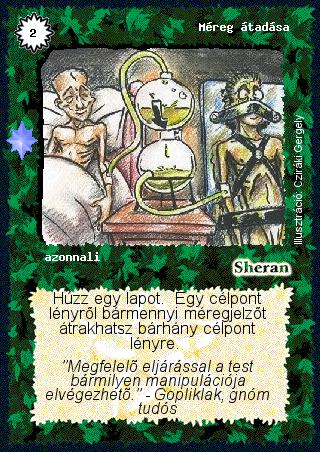 Szöveg: Húzz egy lapot. Egy célpont lényről bármennyi méregjelzőt átrakhatsz bárhány célpont lényre.