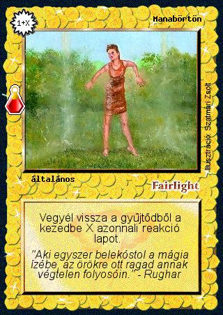 Kiadás: Esthar Császárság Gyakoriság: ritka Lapszín (isten): Fairlight Típus: általános Szöveg: Vegyél vissza a gyűjtődből a kezedbe X azonnali reakció lapot. Szinesítő szöveg: "Aki egyszer belekóstol a mágia ízébe, az örökre ott ragad annak végtelen folyosóin." - Rughar Illusztráció: Szatmári Zsolt
