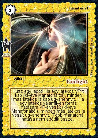 Szöveg: Húzz egy lapot! Ha egy játékos VP-t kap (kivéve Manafonáltól), minden más játékos is kap ugyanennyit. Ha egy játékos valamilyen forrás hatására VP-t veszít (kivéve Manafonáltól), minden más játékos is veszít ugyanennyit. Több manafonál hatása nem adódik össze.