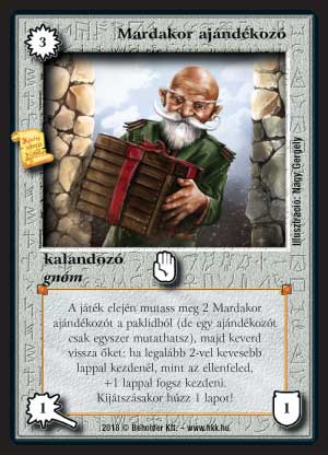 Szöveg: A játék elején mutass meg 2 Mardakor ajándékozót a paklidból "(de egy ajándékozót csak egyszer mutathatsz), majd keverd vissza őket: ha legalább 2-vel kevesebb lappal kezdenél, mint az ellenfeled, +1 lappal fogsz kezdeni. Kijátszásakor húzz 1 lapot!