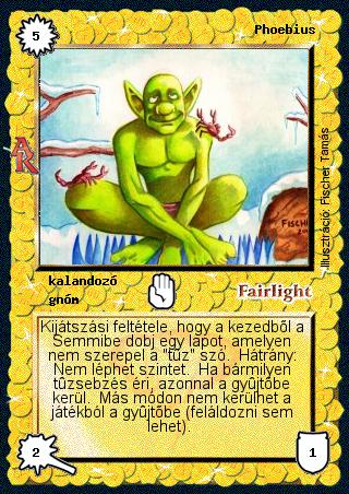 Szöveg: Kijátszási feltétele, hogy a kezedből a Semmibe dobj egy lapot, amelyen nem szerepel a "tűz" szó. Hátrány: Nem léphet szintet. Ha bármilyen tűzsebzés éri, azonnal a gyűjtőbe kerül. Más módon nem kerülhet a játékból a gyűjtőbe (feláldozni sem lehet).