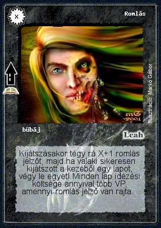 Szöveg: Kijátszásakor tégy rá X+1 romlás jelzőt, majd ha valaki sikeresen kijátszott a kezéből egy lapot, végy le egyet! Minden lap idézési költsége annyival több VP, amennyi romlás jelző van rajta.