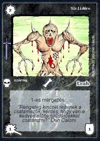Kiadás: Hőskorszak Gyakoriság: nem gyakori Lapszín (isten): Leah Típus: szörny Szöveg: 1-es mérgezés. Szinesítő szöveg: "Rengeteg kincset rejtenek a csatamezők, kérdés, hogy van-e kedved előtte sírlidércekkel csatározni?" Don Caloni Illusztráció: Hörcher László
