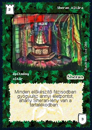 (AK21) Akkor is gyógyulok egyet az előkészítő fázisomban, ha játékban van egy Pozitív létsíkom, egy Sheran oltárom, de nincs Sheran lény a tartalékomban. Ebben az esetben 0 Sheran lény van a tartalékodban, az oltár 0-át gyógyítana, de a helyszín miatt minden gyógyító varázslat és hatás eggyel többet gyógyít. |