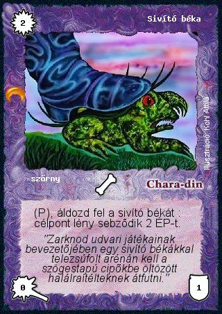 Szöveg: (P), áldozd fel a sivító békát: célpont lény sebződik 2 ÉP-t.