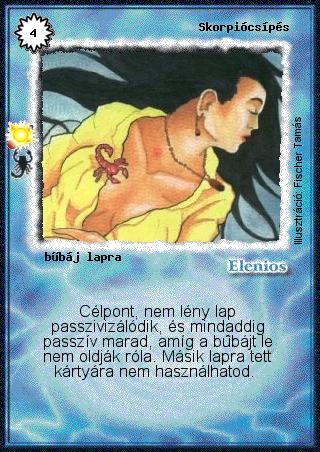 Kiadás: Skorpió (Csillagképek) Gyakoriság: ritka Lapszín (isten): Elenios Típus: bűbáj lapra Szöveg: Célpont, nem lény lap passzivizálódik, és mindaddig passzív marad, amíg a bűbájt le nem oldják róla. Másik lapra tett kártyára nem használhatod. Illusztráció: Fischer Tamás