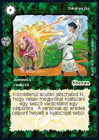 Kiadás: Isteni szövetség Gyakoriság: gyakori Lapszín (isten): Sheran Típus: azonnali Altípus: reakció Szöveg: Közvetlenül azután játszhatod ki, hogy valaki megpróbál kijátszani egy sebző varázslatot egy célpontra. A varázslat az eredeti célpont helyett a kijátszóját sebzi. Illusztráció: