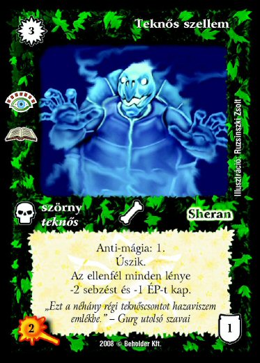 Szöveg: Anti-mágia: 1. Úszik. Az ellenfél minden lénye -2 sebzést és -1 ÉP-t kap.