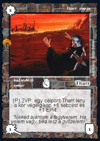 Szöveg: (P),2VP: egy célpont Tharr lény a kör végéig kap +1 sebzést és +1 ÉP-t.