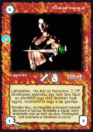 Szöveg: Láthatatlan. Ha átüt az őrposzton, 2 VP elköltésével elvehetsz egy nem lény lapot az ellenféltől (egy ütés fázisban csak egyet), mostantól te vagy a lap gazdája.