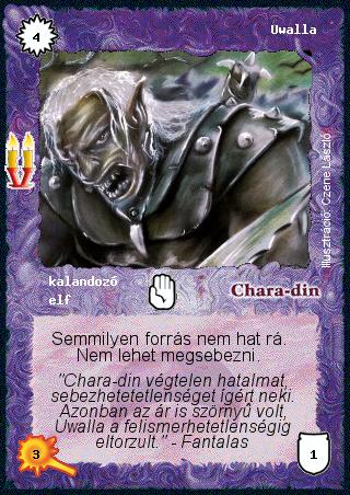 Szinesítő szöveg: "Chara-din végtelen hatalmat, sebezhetetetlenséget ígért neki. Azonban az ár is szörnyű volt, Uwalla a felismerhetetlenségig eltorzult." - Fantalas
