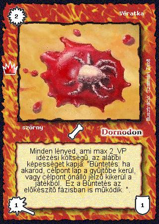 (AK91) Sajnos a Vératka a szövege nem egyértelmű. A büntetésnek ugye azt kellene büntetnie, aki lelövi a lényt. Az atka szövege szerint viszont te döntesz arról, hogy létrejön-e a büntetés vagy nem. Mi eredetileg azt szerettük volna, hogy ha az atka a gyűjtőbe kerül bármilyen hatástól, akkor te leszedheted az ellenfél egyik lapját. Ezért maradunk is ennél, a félreérthető megfogalmazás ellenére. Vagyis bárki lövi le az atkát, mindenképpen a gazdája dönt a képesség használatáról, és ő választ célpontot neki. | (AK93) Két lapot szedhetek le az ellenféltől, ha két Vératkám van játékban, és lelövöm az egyiket, mivel a büntetések összeadódnak. Azonban ha van a játékban egy életjelzős lény, akkor nem mondhatom azt, hogy az egyik büntetéssel leszedem az életjelzőt róla, a másikkal megölöm a lényt. Ugyanis, amikor létrejön a büntetés megnevezem a célpont lapokat, mindkettőnél az életjelzős lényt, majd ezután egyszerre létrejön a büntetés, a lény a gyűjtőbe kerülne, az életjelzője pedig megmenti. Egy hatással nem lehet kétszer megölni ugyanazt a lényt.