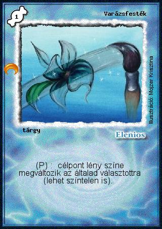 Szöveg: (P): célpont lény színe megváltozik az általad választottra (lehet színtelen is).