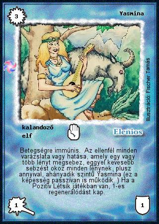 Szöveg: Betegségre immúnis. Az ellenfél minden varázslata vagy hatása, amely egy vagy több lényt megsebez, eggyel kevesebb sebzést okoz minden lénynek, plusz annyival, ahányadik szintű Yasmina (ez a képesség passzívan is működik. ) Ha a Pozitív Létsík játékban van, 1-es regenerálódást kap.