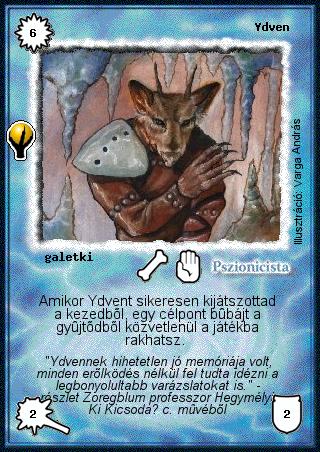 Szinesítő szöveg: "Ydvennek hihetetlen jó memóriája volt, minden erőlködés nélkül fel tudta idézni a legbonyolultabb varázslatokat is." - részlet Zoregblum professzor Hegymélyi Ki Kicsoda? c. művéből