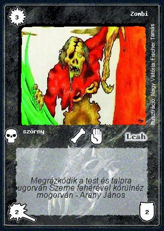 Kiadás: Alappakli, 1. kiadás, Alappakli, 2. kiadás, Alappakli, 3. kiadás, Alappakli, 4. kiadás Gyakoriság: gyakori Lapszín (isten): Leah Típus: szörny Szinesítő szöveg: Megrázkódik a test és talpra ugorván Szeme fehérével körülnéz mogorván - Arany János Illusztráció: Nagy Viktória, Fischer Tamás